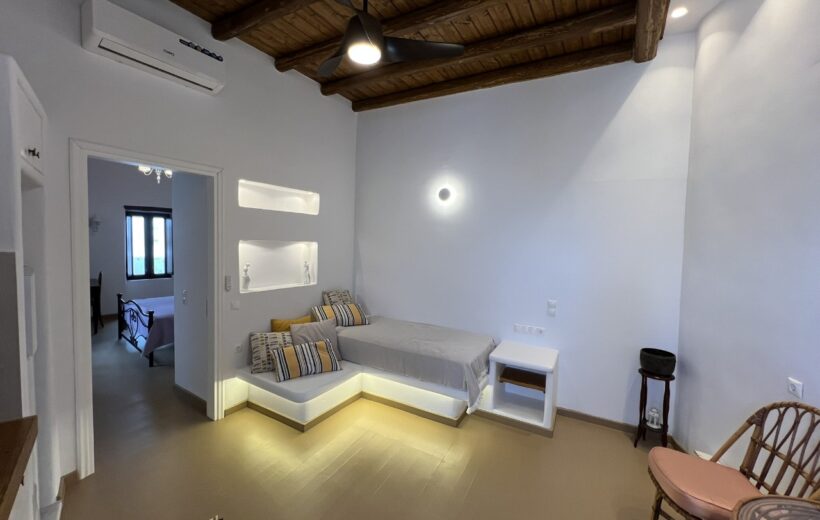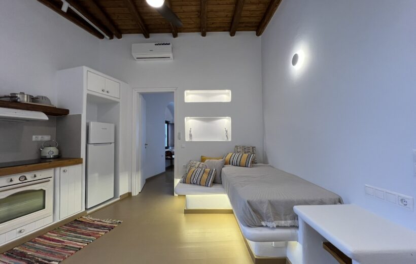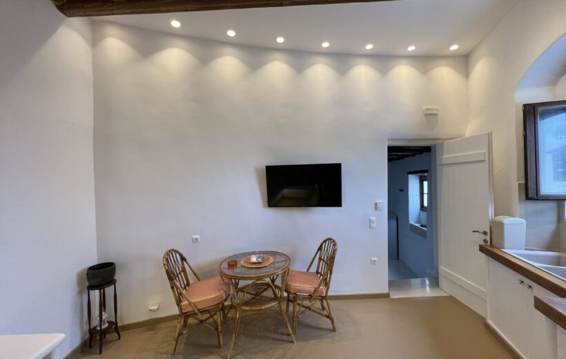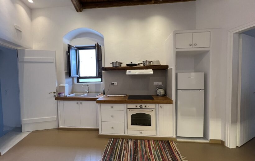Room II sits within the heart of a 15th-century Venetian mansion that once housed the Catholic Archbishop of Naxos and the Cyclades. Lovingly restored by our family, it offers an elegant fusion of ancestral grandeur and modern living. Drawing its light from stone-arched windows that frame the Aegean horizon, this apartment unfolds a soulful experience of timeless beauty and peaceful comfort.